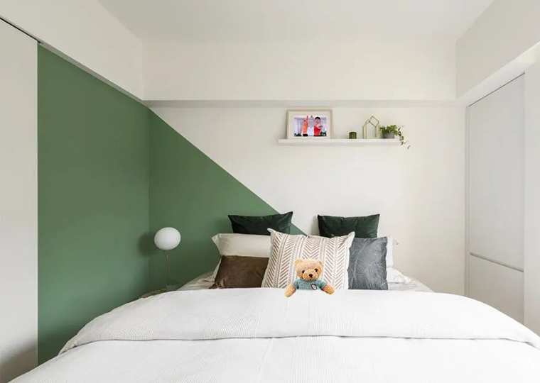 灰綠色的明度和純度都較低,會(huì)為空間帶來(lái)低調(diào)、安寧的氣氛,綠色直接在視網(wǎng)膜上成像,是眼睛最容易看到的顏色,特別適合用在運(yùn)動(dòng)場(chǎng)所,有助于讓人放松又集中注意力。白色與灰綠相遇讓空間看起來(lái)具有生機(jī)。白色的牆面讓空間的布局顯得沒(méi)有那麼擁擠,雖然這樣的配色有明亮的光線配合最好,但是由于搭配本身就淺淺淡淡,所以放心!沒(méi)有一扇明窗照樣可以嘗試。