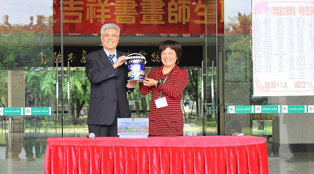 簡單而莊重的捐贈儀式在東莞臺商子弟學校“麗德”行政樓前舉行,陳金粧校長與陳春華總經(jīng)理分別代表東莞臺商子弟學校和東莞大寶化工參加捐贈儀式。陳校長在致詞中,首先對陳總一行的到來表示誠摯的歡迎,并表達了對于大寶化工為學校捐贈油漆的感謝之意。陳總在致辭中勉勵學生認真學習,心懷感恩做有用的人才,將來感恩回報社會。