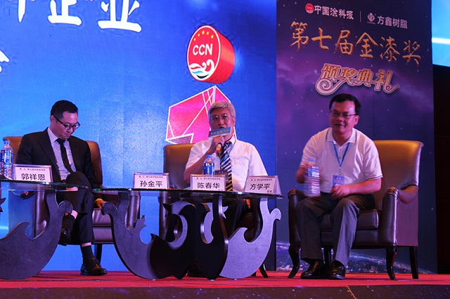 5月29日,由中國(guó)涂料報(bào)主辦的第七屆金漆獎(jiǎng)?lì)C獎(jiǎng)盛典暨第八屆中國(guó)涂料企業(yè)領(lǐng)袖峰會(huì)在順德喜來(lái)登酒店隆重召開(kāi)。來(lái)自全國(guó)各地涂料企業(yè)代表、經(jīng)銷(xiāo)商及媒體近200人出席了本次盛會(huì),身為涂料行業(yè)中的領(lǐng)軍企業(yè),大寶化工總經(jīng)理陳春華及企劃部副理?xiàng)钪覙s應(yīng)邀參加了此次盛會(huì)。同時(shí),陳春華總經(jīng)理作為特邀嘉賓,在現(xiàn)場(chǎng)也和國(guó)內(nèi)其他涂料界大老們?cè)陬I(lǐng)袖峰會(huì)論壇中對(duì)于國(guó)內(nèi)涂料市場(chǎng)的未來(lái)發(fā)展進(jìn)行了分析及探討。