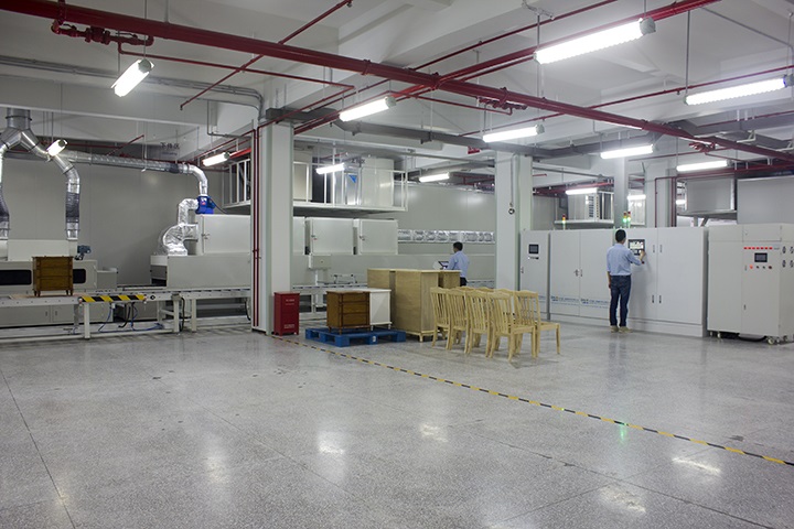 在國家與日俱增的環保政策要求之下,家具企業紛紛把“油改水”計劃提上了日程,眾所周知,油改水發展最大的瓶頸則在于水性涂料的干燥問題。有鑒于此,大寶漆特聯合中國科學院電子計算研究所,同時與設備供應廠商合作,采用前瞻技術,歷時近3年,經過反復的溝通、協調及試驗,以解決水性家具漆自動化生產所面臨的重要問題為突破,共同研發了擁有專利技術的全方位立體干燥設備系統,并率先打造了我國涂料界首家大規模的智能化涂裝測試線。