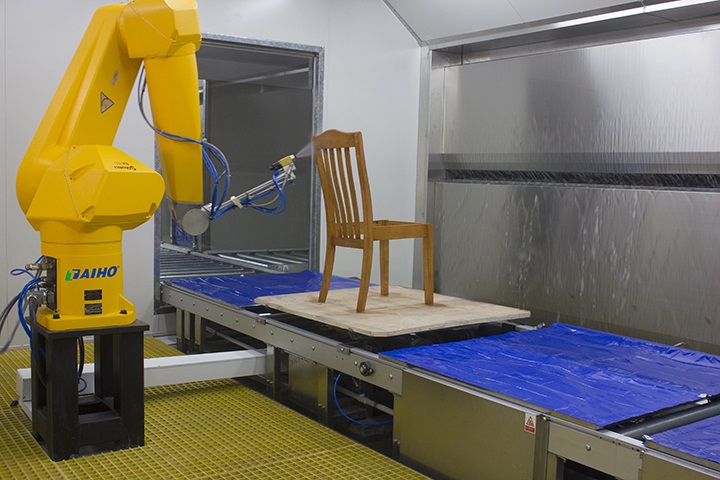 大寶水性家具漆搭配智能化涂裝設備系統,涂膜效果在透明性方面與油性漆無異,且水性UV的硬度更是達到H以上,抗刮性比一般溶劑型PU漆更好;同時大寶水性家具漆除了具有優于市場一般所見的耐磨刮和抗污性能之外,更為重要的是,噴完即烘,不需等待,一個小時內可完成從噴漆到烘干的作業,從而滿足家具廠水性家具批量生產的需要。