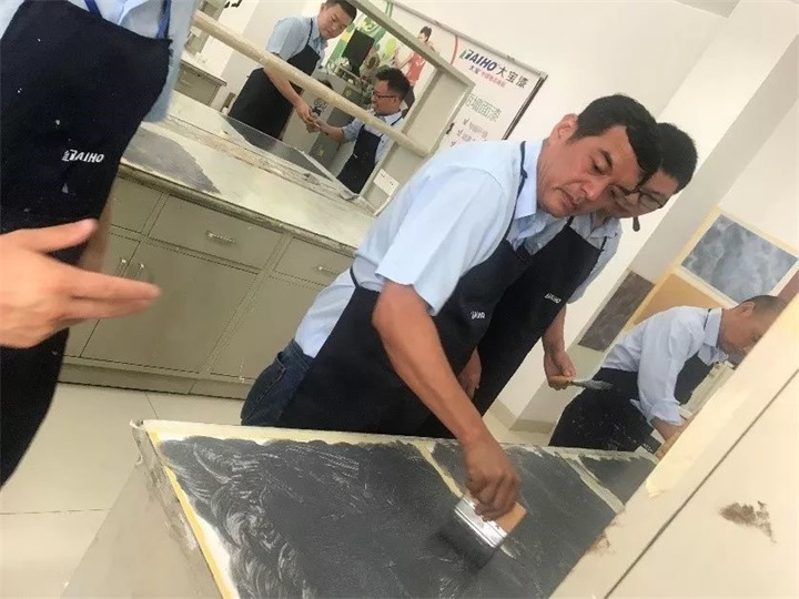 經銷事業(yè)部團隊還進行了專業(yè)的產品培訓,培訓的項目包括2019年大寶漆在經銷渠道上市的金級7+1墻面漆、雙離子抗甲醛全效兒童漆、水性調合漆、進口的全球涂料系列產品和樓貝進口藝術涂料等產品特性和涂裝操作。通過樣板體驗產品的手感、動手體驗產品的施工操作,使大家對公司的新品性能有了更客觀、正確的認識。增強了銷售人員對公司產品的信心,從而更好的將新品推廣到市場!