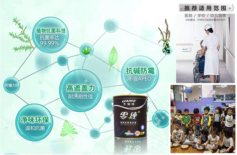 大寶始終將消費者的健康放在首位,將【植物抗菌技術】導入涂料中,對配方技術進行創新升級,并成功研發零純+植物抗菌墻面漆。