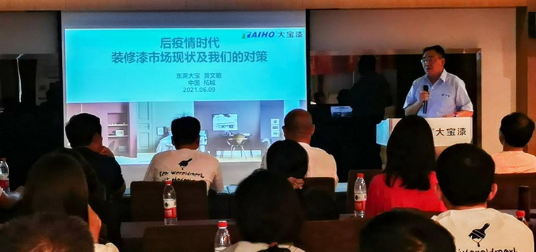 隨后由業(yè)三部東北區(qū)域業(yè)務(wù)課長(zhǎng)黃河玉向經(jīng)銷(xiāo)商系統(tǒng)而專業(yè)地介紹了近期公司上市的各渠道新產(chǎn)品。從零售渠道新推出的大寶抗病毒全效墻面漆、零純+植物抗菌墻面漆,到專業(yè)領(lǐng)域的絲絨蛋殼光產(chǎn)品、陽(yáng)臺(tái)廚衛(wèi)專用漆、工業(yè)風(fēng)裝修所需的炫黑涂料;從工程渠道的仿石漆產(chǎn)品、地坪漆到工程領(lǐng)域新關(guān)注的無(wú)機(jī)涂料產(chǎn)品系列、大健康產(chǎn)品系列再到工業(yè)領(lǐng)域的輕防腐系列產(chǎn)品;從家裝市場(chǎng)輔助材料的防水、墻地固、瓷磚背膠系列到工程翻新和維修渠道的滲透型界面劑、大寶液體卷材等,黃課長(zhǎng)結(jié)合每種產(chǎn)品的上市背景、物性介紹、產(chǎn)品認(rèn)證和檢驗(yàn)報(bào)告等內(nèi)容向經(jīng)銷(xiāo)商推介每種產(chǎn)品的市場(chǎng)推廣方向、市場(chǎng)銷(xiāo)售機(jī)會(huì)及施工注意事項(xiàng)。