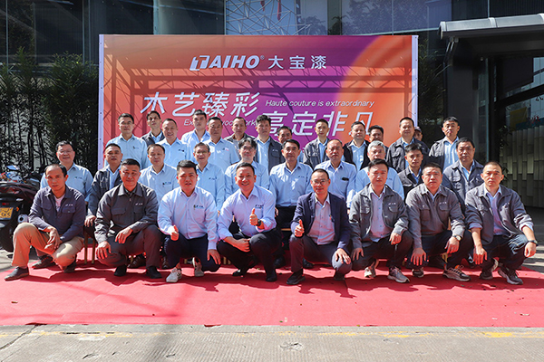 11月5日,大寶漆順德·龍江全新高定涂裝工藝展廳盛大啟幕?;顒右浴澳舅囌椴?高定非凡”為主題,大寶化工直銷事業部總經理張正賢、業務一部副總經理周志鴻、業務一部營銷總監葉小兵以及順德辦全體業務與工程服務人員等,共同見證了這一服務升級的新里程碑。
