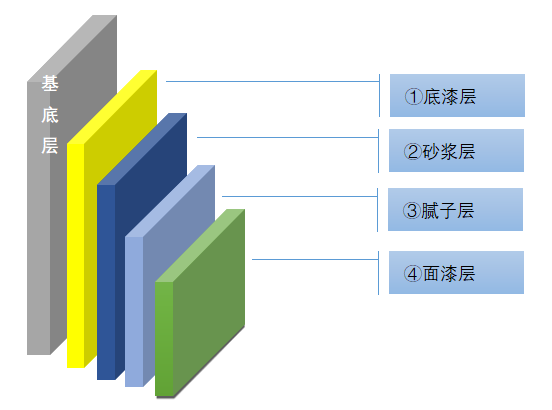 砂漿層干后,打磨、清掃干凈后,用水性中涂調配石英粉或雙飛粉刮涂水性膩子層 |
