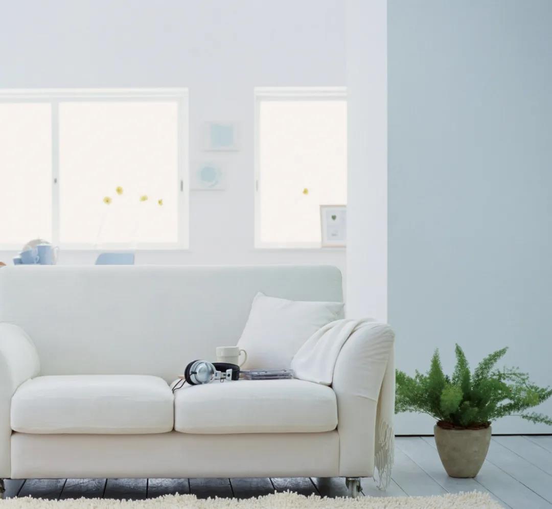 空間整體以天空藍(lán)為主打色,在柔和色彩的映襯下搭配白色的布藝沙發(fā),營(yíng)造出輕柔、唯美、慵懶的居家氛圍。